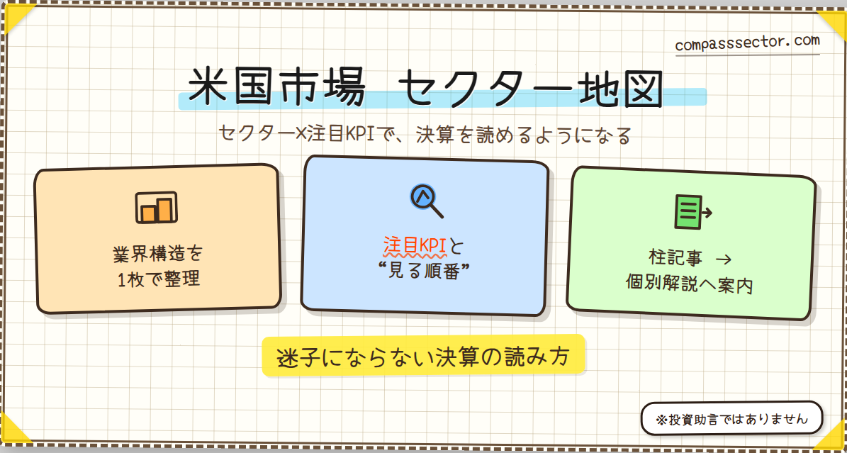 このページでは、半導体セクターを 業界構造 → 注目KPI → 主要銘柄マップ → 決算で見るポイント の順に整理します。